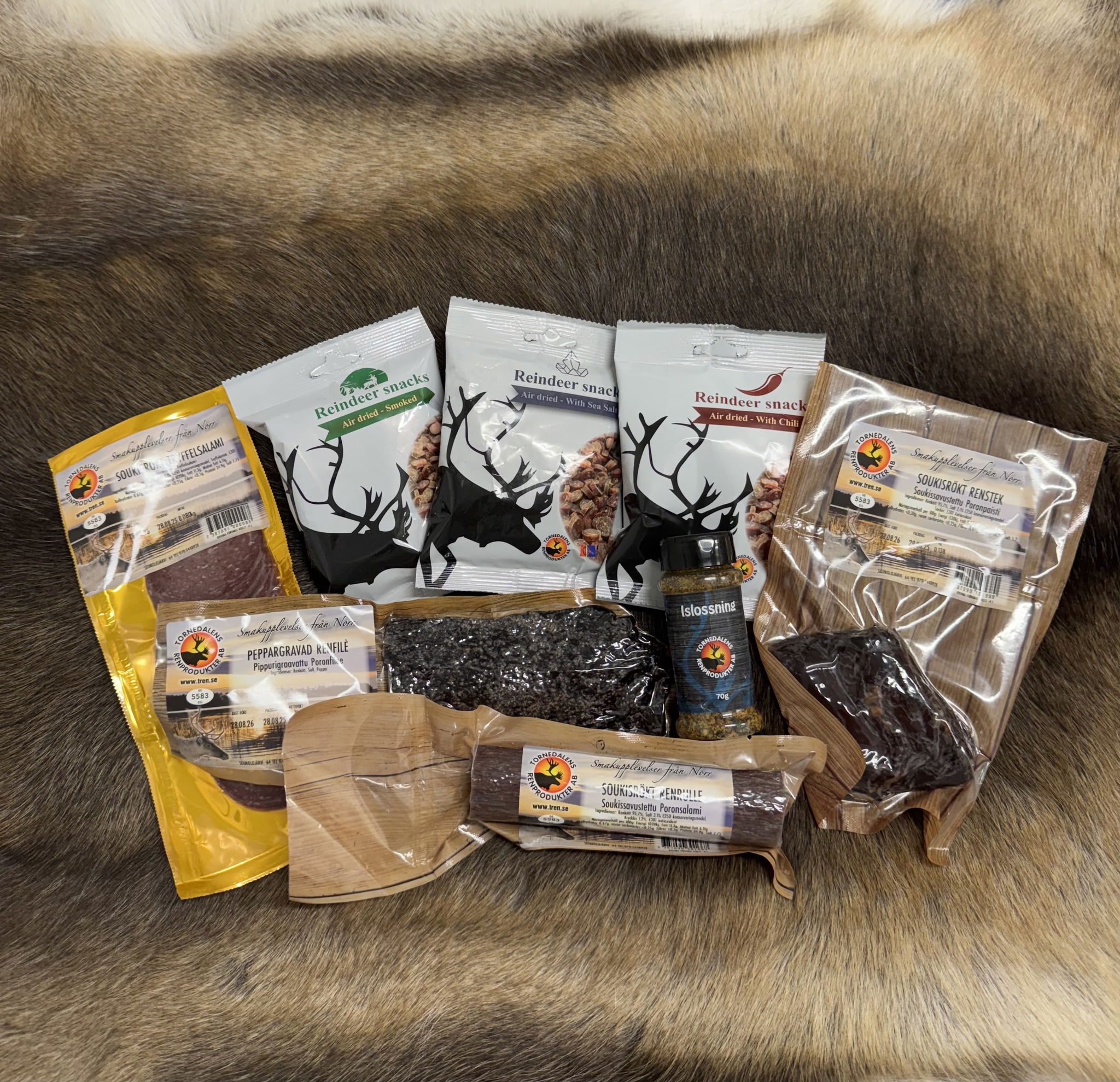 Ge dig själv eller någon du tycker om en smakresa rakt från de norrländska vidderna. I våran delikatesslåda får du ett noga urval av våra mest populära renprodukter – perfekt för dig som vill upptäcka smaken av vildmarken.