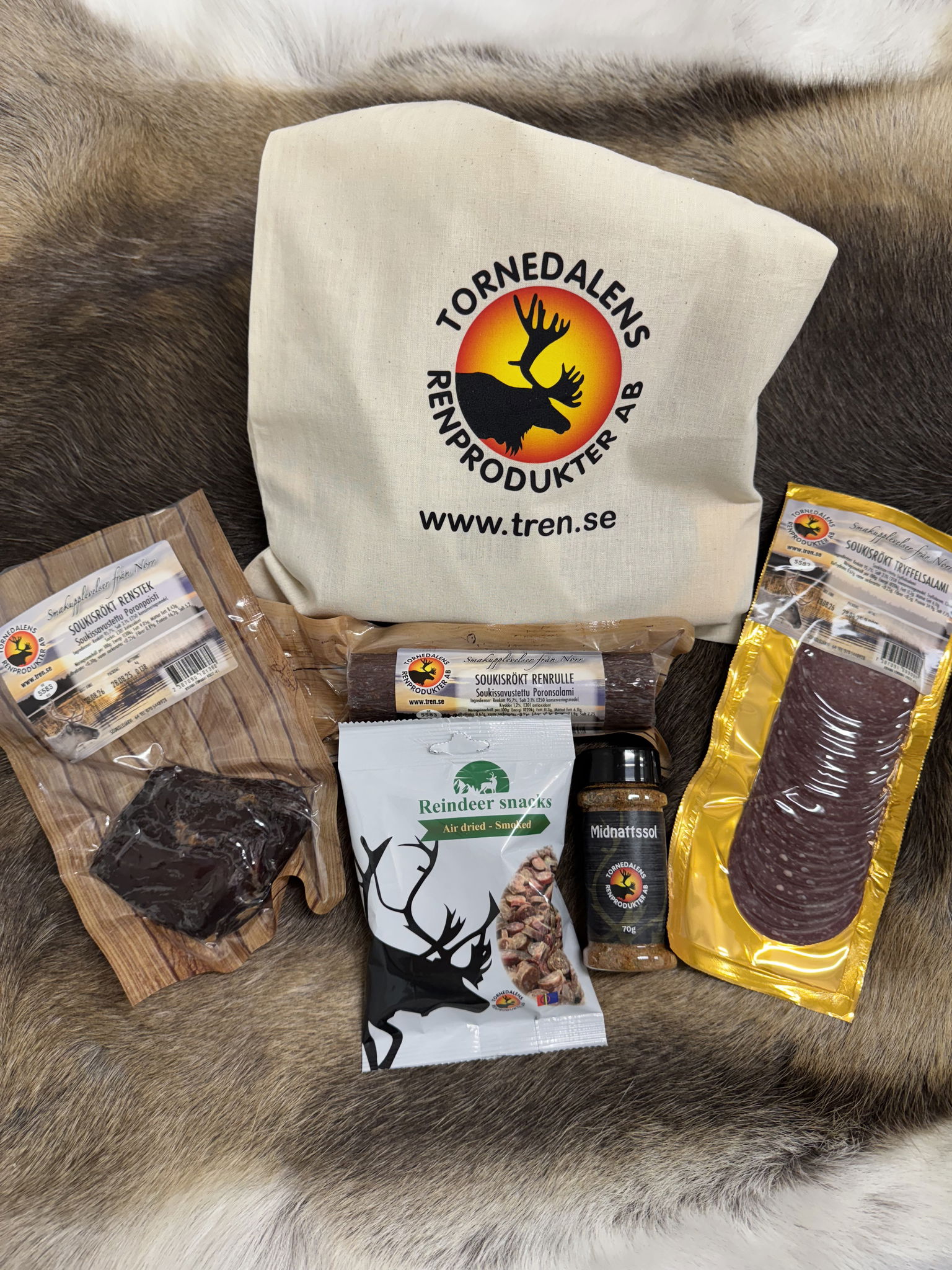 Den här påsen innehåller en noga utvald kombination av våra klassiska produkter – rökt, torkat och kryddat enligt tradition från Tornedalen.